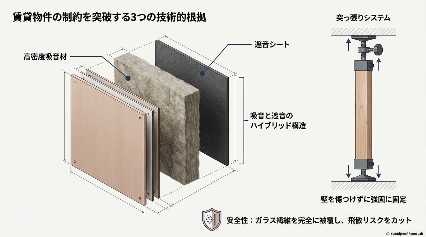 この製品が多くの支持を集める理由は、賃貸物件という制約の多い環境下でも、退去時の原状回復を気にせずにプロ仕様に近い防音壁を構築できる点にあります。
